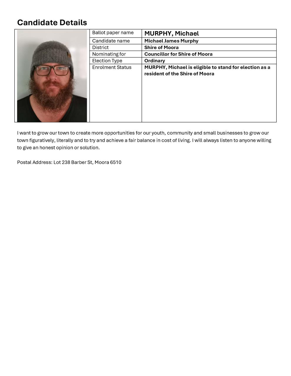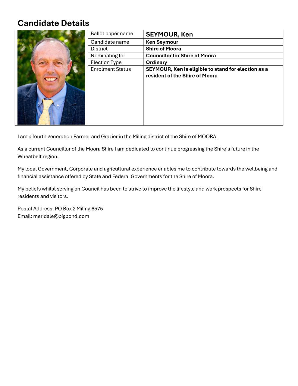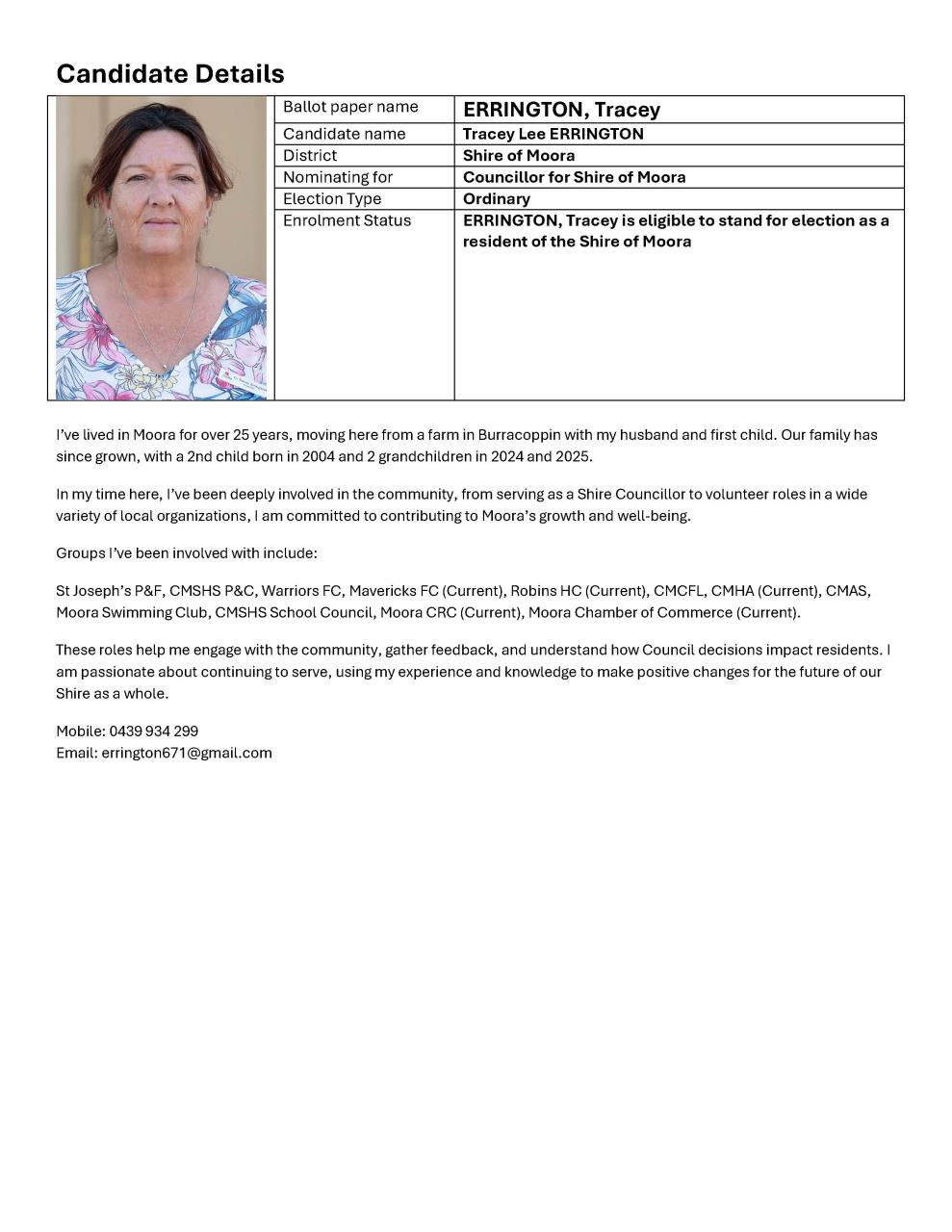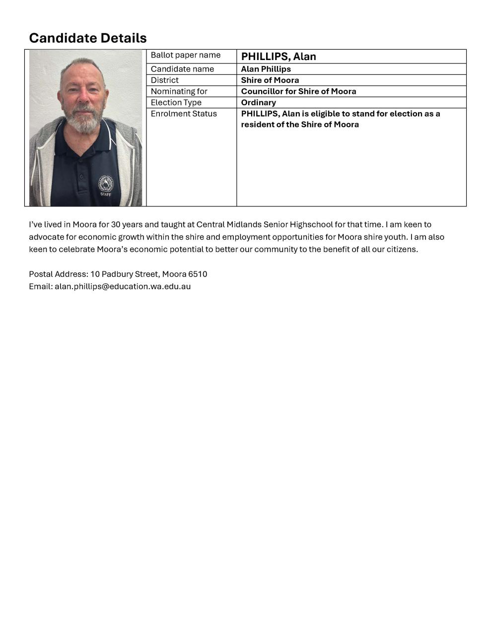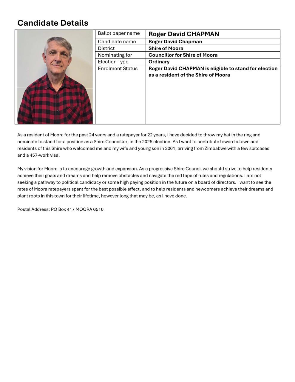 - Live outside the Shire but own property and pay rates in the Shire of Moora